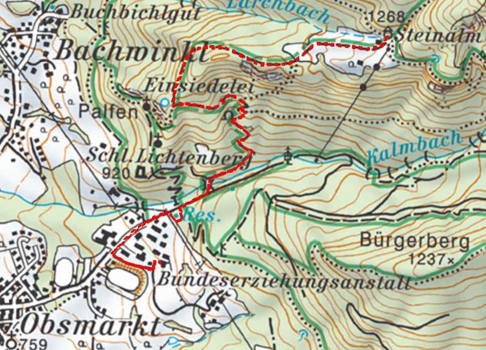 Dann erreichen wir die Steinalm. Seit kurzem führt eine neu errichtete Forststraße herauf und die Materialseilbahn wird abgebaut.
