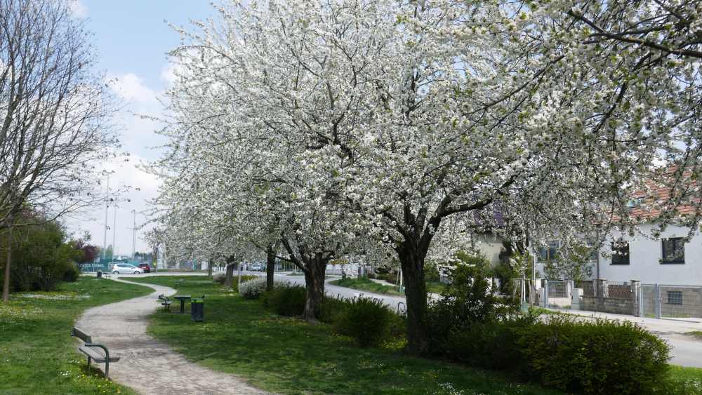 ... durch die in voller Blütenpracht stehende Kirschenallee nach Essling.