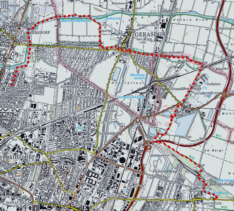 Beim Badesee Gerasdorf trifft der Stadtwanderweg auf den Marchfeldkanal, dem er bis nach Stammersdorf folgt.