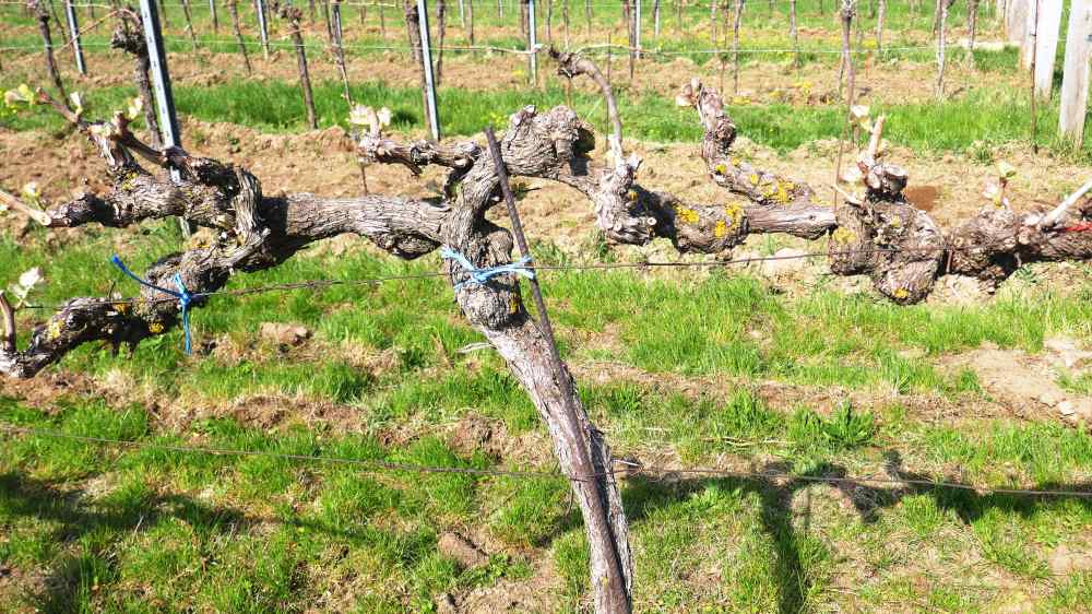 Dieser alte Weinstock wurde radikal zurück geschnitten, treibt aber an vielen Stellen an.