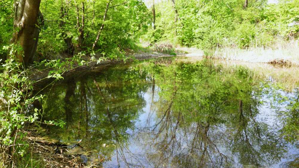 Am Beginn des weiteren Abstieges über die Senderstraße passiert man diesen kleinen Teich.