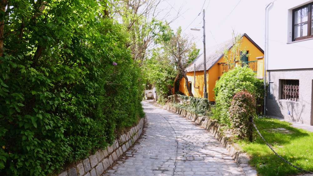 Jetzt geht es durch die Krottenhofgasse hinunter nach Strebersdorf.