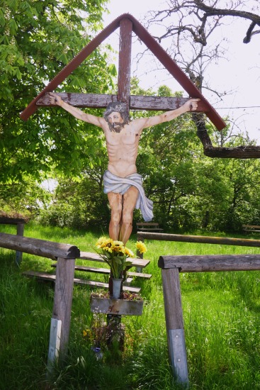 An der Kreuzung mit der Straße "Am Bisamberg" steht dieses Wegkreuz.