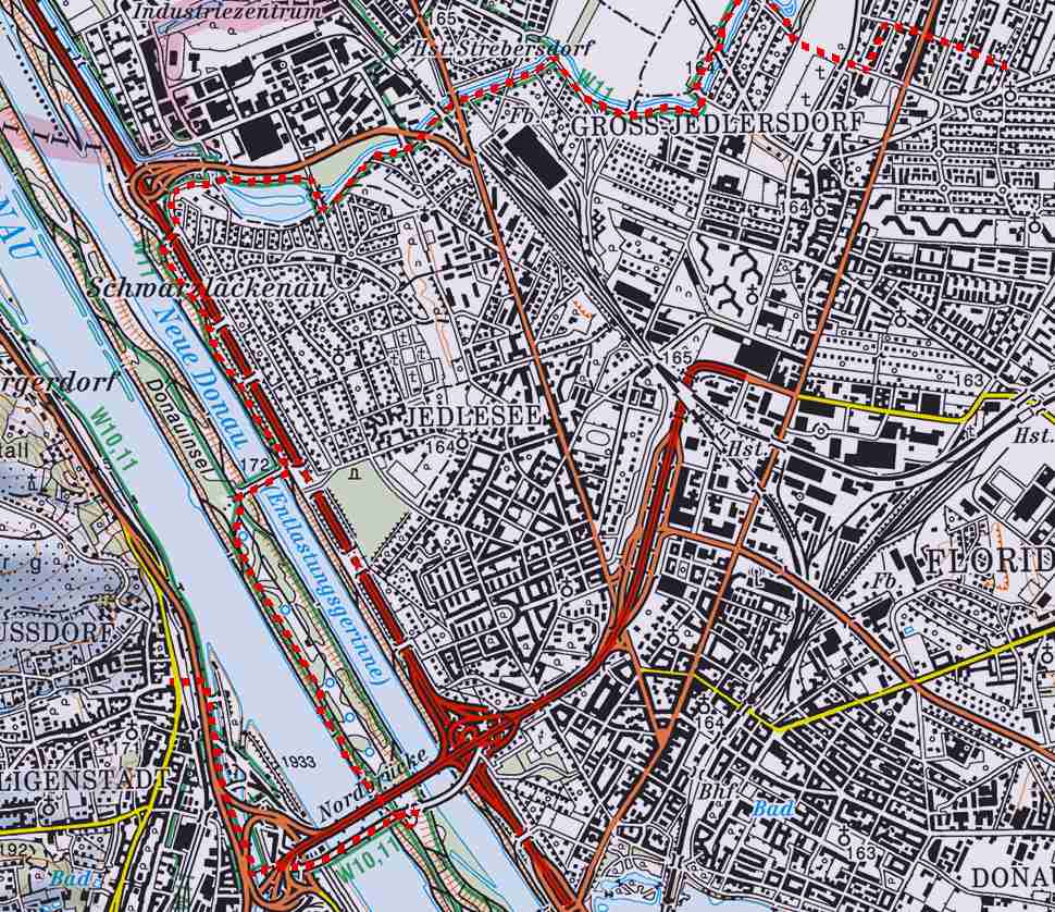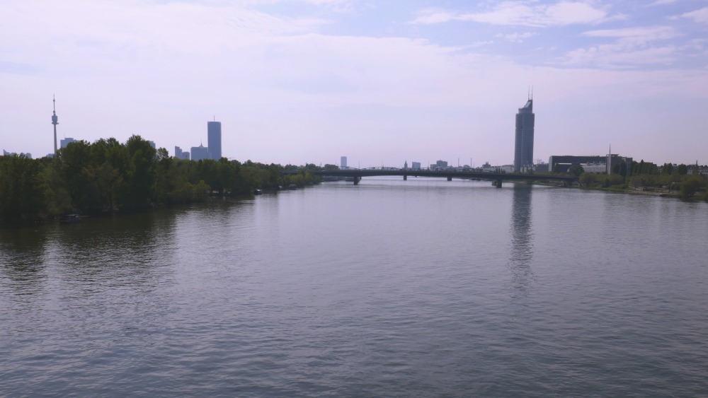 Auf der Jedleseer-Brücke überquere ich die Neue Donau und komme auf die Donauinsel.