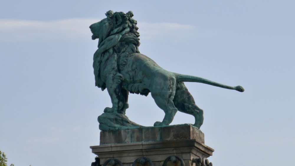 Stolz blicken die beiden Löwen stromaufwärts-