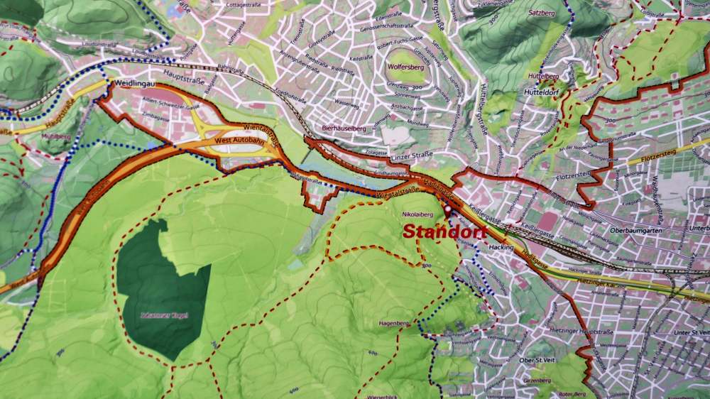 Lage des Naturwaldreservats im Nordwesten des Lainzer Tiergartens.
