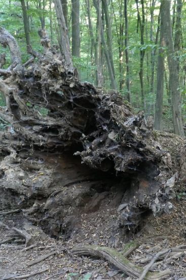 Umgestürzte Bäume bleiben ihrem Schicksal überlassen und dienen verschiedenen Käfern und anderen Insekten als Unterschlupf.
