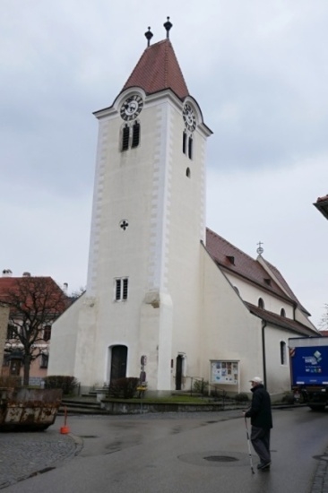Wir starteten unsere Wanderung nach einem kurzen Regenschauer bei der aus dem 14. Jahrhundert stammenden Pfarrkirche vom Rossatz.