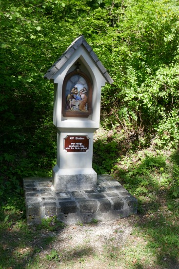 Gleich hinter der Kirche führt uns der Kreuzweg steil hinauf.